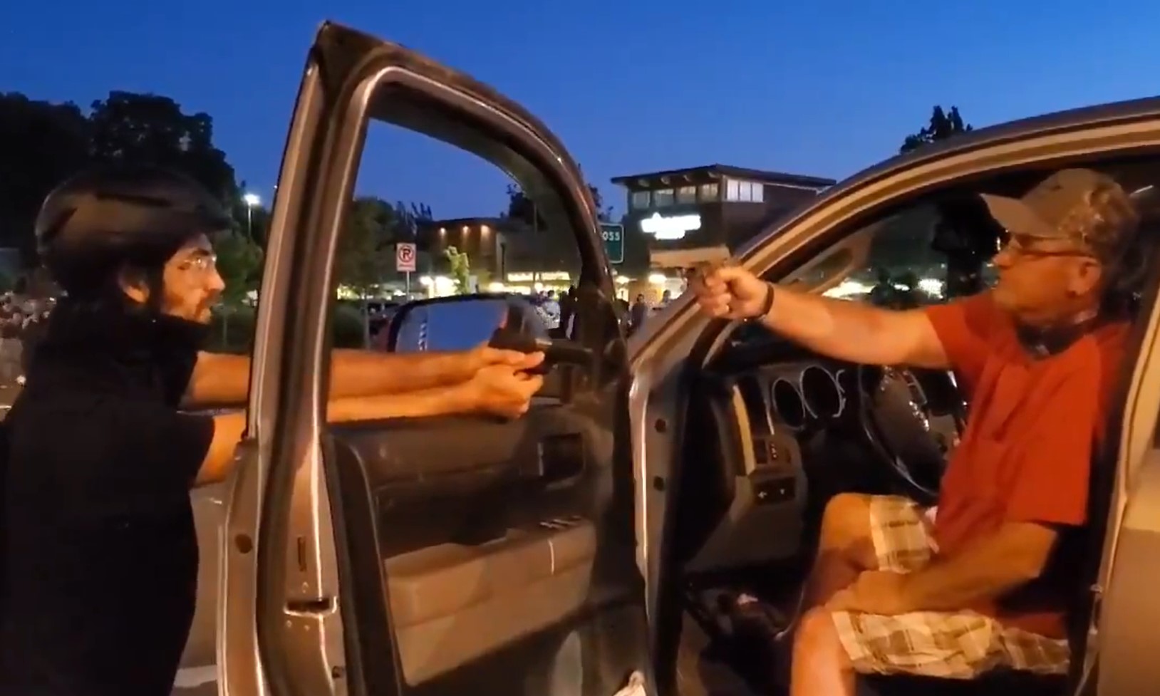 Han illustrerar den allt djupare kulturkampen med en bild där en konservativ vit man i pickup och en anarkistisk BLM-aktivist riktar pistoler mot varandra på nära håll.