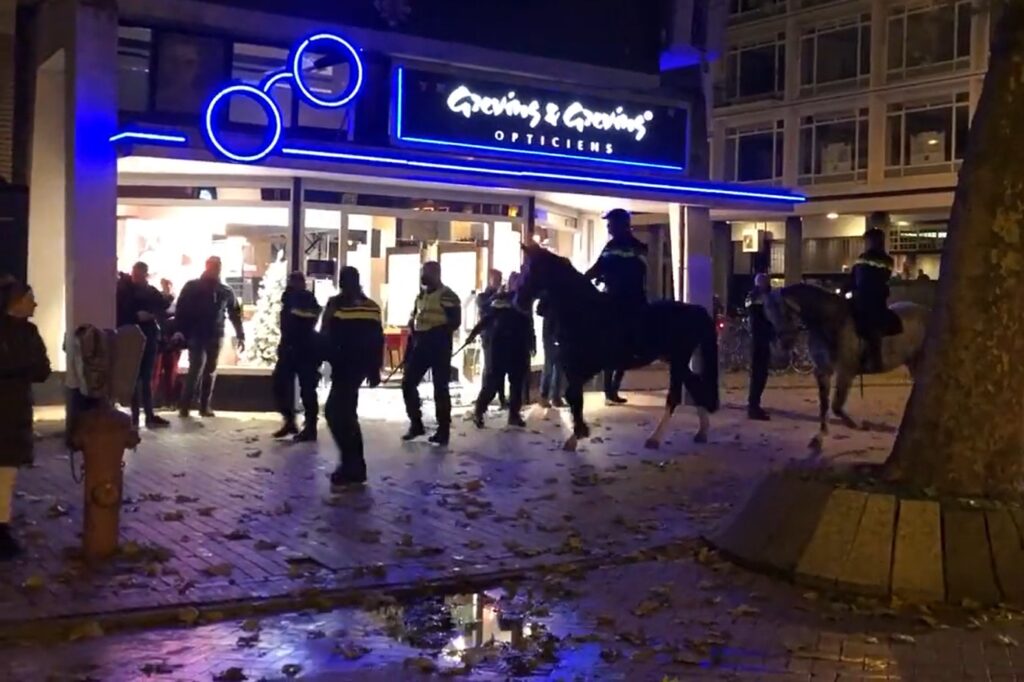 ”Flera små grupper förstör saker i centrum”, säger en taleskvinna för polisen i Groningen till AFP. ”Kravallpolis är på plats i centrum för att återställa ordningen.”