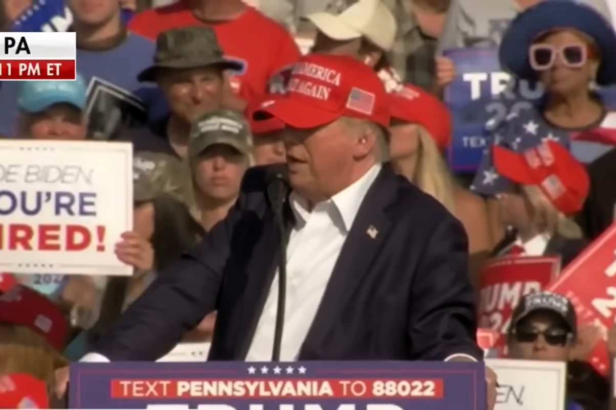 Flera skott avlossades medan Donald Trump höll valtal. Trump träffades ytligt och lämnade scenen blodig, omringad av livvakter. Flera i publiken träffades, varav en dödades. Skytten sköts snabbt ihjäl.