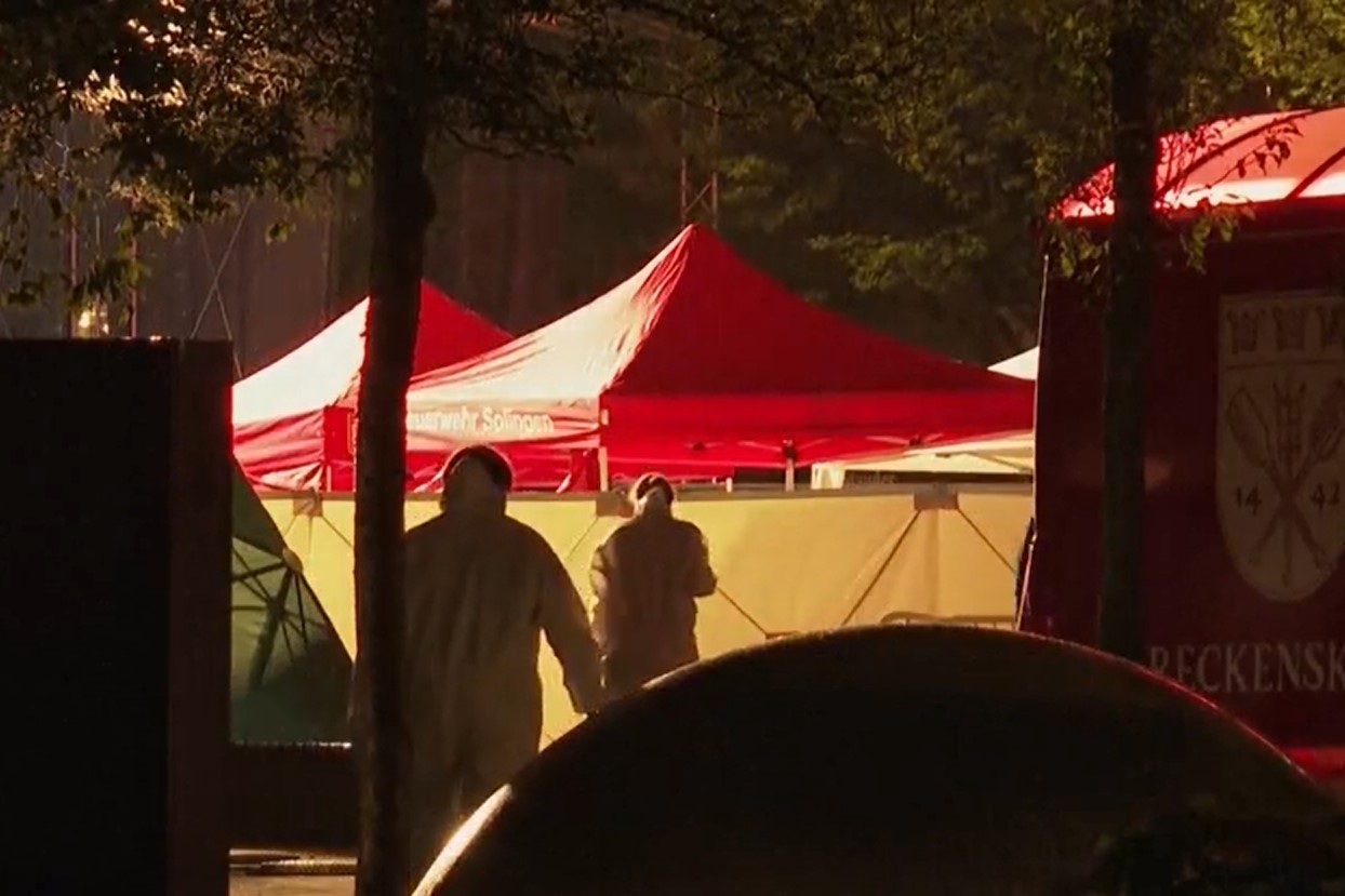 Attacken skedde framför en musikscen vid ett evenemang på Solingens salutorg på fredagen. Två män, 67 och 56 år, och en 56-årig kvinna dödades av den knivbeväpnade angriparen, som också skadade åtta andra personer, varav fyra allvarligt.