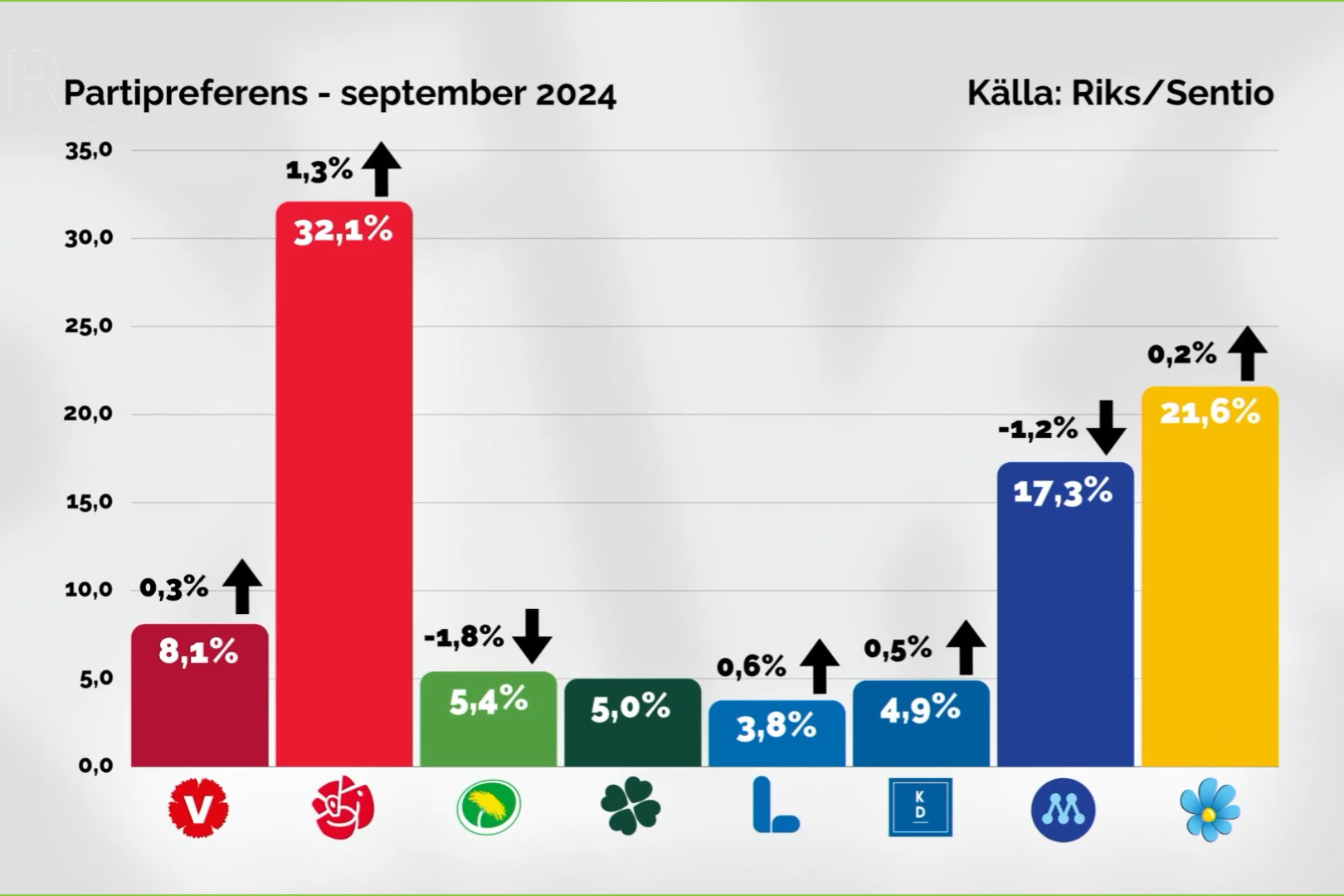 Det visar Sentio i sin septembermätning som presenteras av nyhetskanalen Riks.
