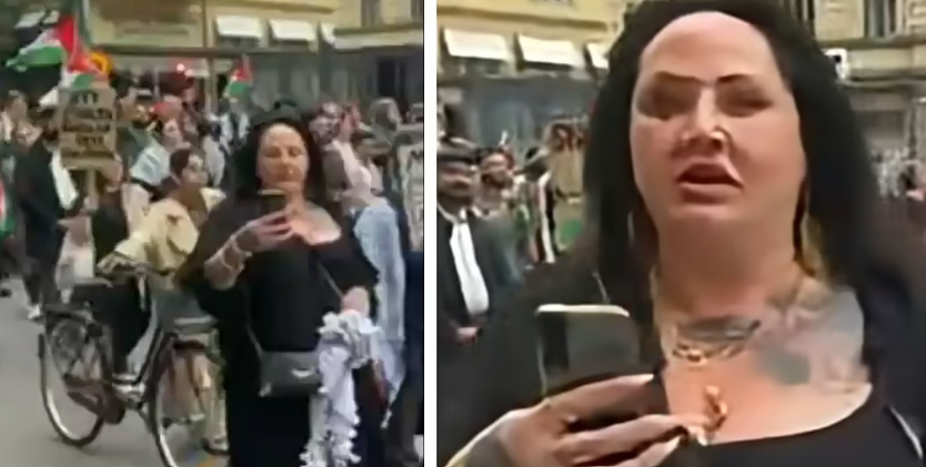 Riks avslöjade här om dagen identiteten på den kvinna som fångades på film av 16-årige Samuel. Han stod lugnt och filmade ett demonstrationståg till stöd för Palestina när hon oprovocerat avviker från sin plats i tåget och kommer fram till honom.